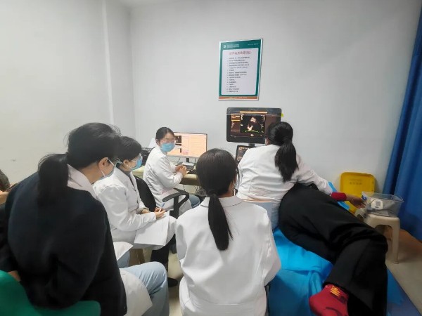 随后,许昌市人民医院超声科团队深入市六院超声检查室、临床诊疗病区,实地观摩该病完整超声检查流程及诊疗衔接环节。王佳丽通过典型病例现场演示,针对检查难点、诊断疑点与来访团队一对一研讨,解答诊疗困惑,双方就实操优化方向交换了意见。