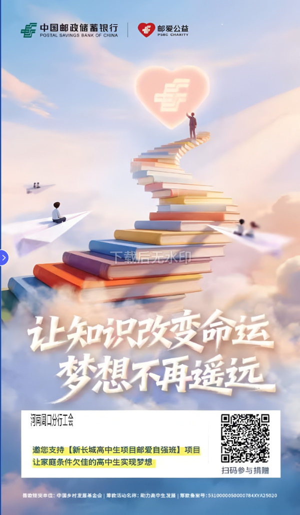 春回大地,爱满周口。3月19日,邮储银行周口市分行工会正式启动2026年“邮爱公益”一起捐活动,面向全行员工、广大客户及社会各界爱心人士募集善款,支持新长城高中生项目“邮爱自强班”建设,帮助家庭困难、品学兼优的学子圆梦求学路。