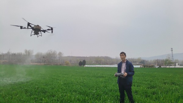 3月25日下午,郏县李口镇凤凰岭村的麦田里,55岁的村民李国强正熟练操控着植保无人机,为农户的小麦开展春季“三喷一防”作业。伴随着旋翼转动,30亩(1亩≈666.67平方米)小麦的农药喷洒工作短短几分钟便高效完成,省时省力的现代化农机作业让农户连连称赞。