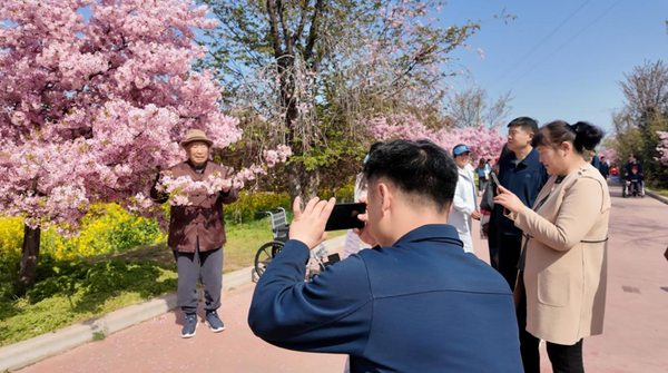 当日上午,老同志们在该所工作人员的贴心陪伴下,有序前往樱花园游览。大家沿着樱花大道漫步,驻足欣赏盛放的樱花,在油菜花海中畅谈往昔、共话今朝。该所官兵、工作人员主动为老同志们拍照留念、搀扶引导,为行动不便的老同志提供座椅休息,全程细致周到、贴心暖心。