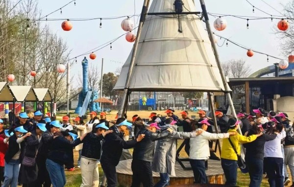 赏花过后,趣味团建PK 赛正式拉开帷幕。员工们被分为三个战队,各队挥舞队旗、喊响口号,迅速进入竞技状态。“赶鸭子”“踩气球”“团队协作传气球” 等趣味项目轮番上演,既有贴合企业产业特色的创意设计,又充满团队协作的互动乐趣。比赛中,各战队群策群力、默契配合,在速度与智慧的比拼中凝聚力量,现场加油声、欢呼声此起彼伏。这场欢乐竞技不仅释放了工作压力,更生动展现了华英人 “开拓进取、团结拼搏、竞争向上” 的精神风貌,让团队协作意识在互动中深入人心。