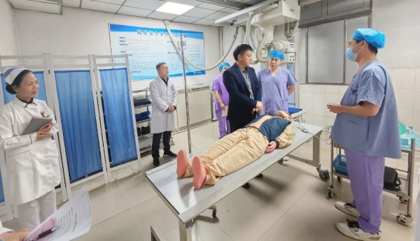 为进一步强化影像科、介入科、彩超室医护人员应急救治能力,规范心脏骤停急救操作流程,筑牢科室突发急症医疗安全防线,保障患者诊疗过程中的生命安全,近日,漯河市中医院影像科、介入科、彩超室联合开展心脏骤停急救专项演练,副院长闫丙川带领护理部主任郭书娟及相关人员到演练现场,全程参与并进行专业指导。