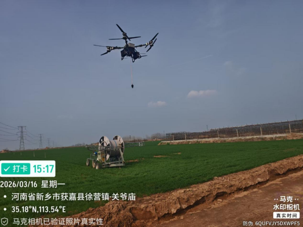 获嘉县供销社在推进“一喷三防”飞防作业的基础上,不断拓展农业社会化服务场景,创新服务模式。在徐营镇关爷庙等作业现场,除了常规植保无人机作业,还引入了无人机物流配送、高效节水灌溉等服务,同时推广喷灌等现代化灌溉技术,实现麦田精准灌溉,提升水资源利用效率。供销社以全域服务为目标,将农资供应、飞防植保、农田灌溉、技术指导等服务深度融合,为农户提供一站式、全周期农业服务,推动农业生产向规模化、智能化、高效化转型,助力乡村振兴。
