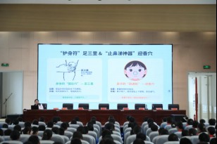 捐赠仪式后,召陵区中医院的专家团带来干货满满的中医药文化宣讲,用专业力量为青少年健康筑牢防线。儿科的伍欣然主任从中医角度深入浅出地讲解了春季为何容易生病的奥秘,帮助孩子们理解季节变化与身体健康的密切关联。她还现场分享了实用的中医养生小妙招,介绍适合青少年的春季养生茶饮,让孩子们在日常生活中学会调理身体;更现场演示了简便易学的中医按摩手法,孩子们兴致勃勃地跟着练习,现场气氛活跃。生动的讲解与互动,让中医药文化在孩子们心中悄然生根。