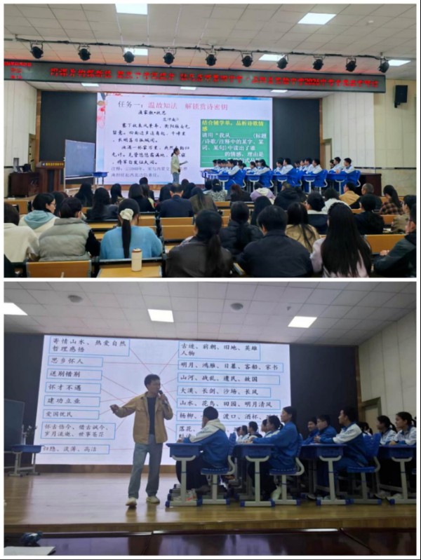 语文组以“中考诗歌赏析之情感把握”为题,呈现两节风格迥异却殊途同归的精品课。许晶老师以“墨染诗心”为引,如工笔描摹,搭建“读标题—审注释—观景物—觅情语”四步鉴赏法,从单篇深耕到跨篇联动,尽显专业功底。朱星老师以“含英咀华”为径,如写意泼墨,以“意象”为桥打通情感脉络,将诗词与“修身齐家治国平天下”的士人理想深度绑定,春风化雨,润物无声。