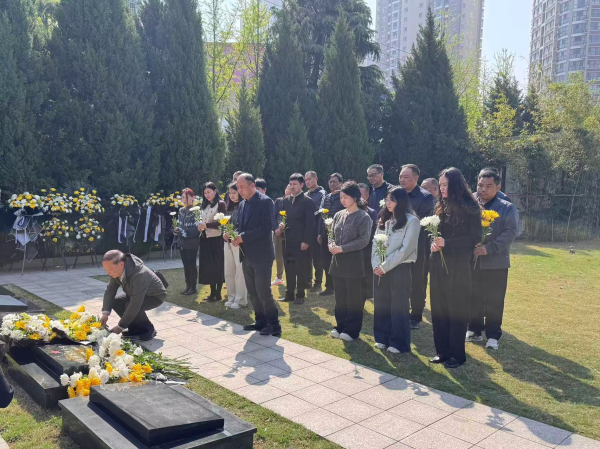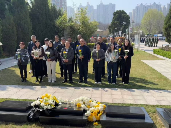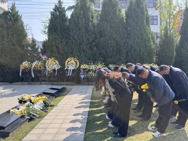 在庄严肃穆的烈士纪念碑前,全体人员整齐列队,神情肃穆。大家向为民族解放和人民幸福英勇献身的革命先烈三鞠躬,表达深切缅怀与崇高敬意。默哀结束后,全体人员手持菊花,绕场一周,敬献于纪念碑前,让金黄的菊花簇拥着英烈忠魂,诉说着对革命先辈的无限追思。随后,大家来到烈士墓区,怀着崇敬之心,瞻仰英烈事迹,擦拭烈士墓碑。