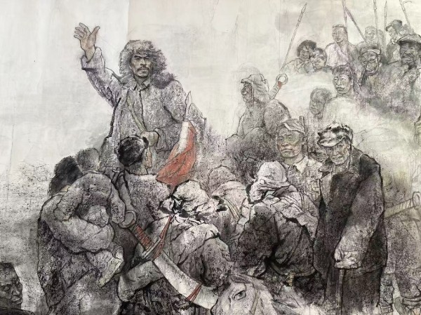 本次展出的《人民英雄杨靖宇》百米长卷,是各位主创艺术家历时数月、笔耕不辍的匠心之作。长卷以细腻的笔触、饱满的色彩,生动再现了杨靖宇将军从发动群众到壮烈殉国的英雄历程,每一笔线条都镌刻着英雄的峥嵘岁月,每一抹色彩都饱含着对先烈的深切缅怀,让英雄形象跃然纸上,让红色精神代代相传。