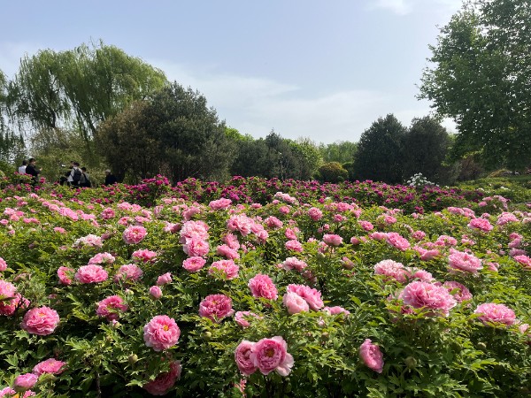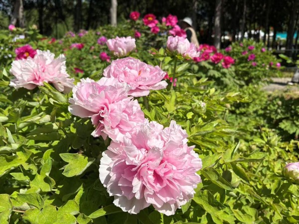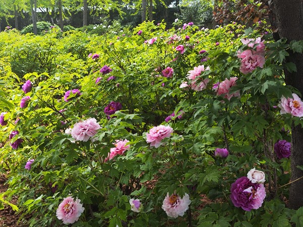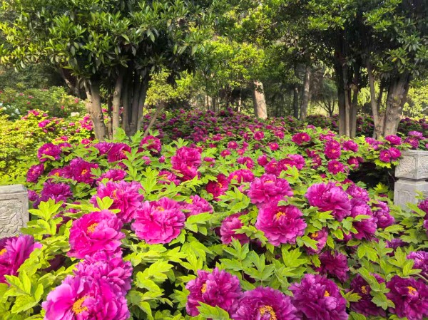 国际牡丹园:全园共有约40个品种牡丹开放。主要分布在林下花境、华夏园、二环路、生产科技园等处。其中:盛开的牡丹品种有蓝月亮、太平红、火炼金丹、二乔、紫燕双飞、墨润绝伦(黑色,盆花)、黄冠(黄色,盆花)、香玉(盆花)、珊瑚台(盆花)、百园红霞(盆花)等;初开的牡丹品种有赵粉、珊瑚台、脂红、卷叶红、绿幕隐玉(盆花)、花王(盆花)、春柳(盆花)等。园内荷包牡丹、樱花、榆叶梅、贴梗海棠、碧桃等竞相绽放。陆续将会有2000盆精品牡丹盆花和牡丹鲜切花花墙在“林下花境”处供游客观赏。