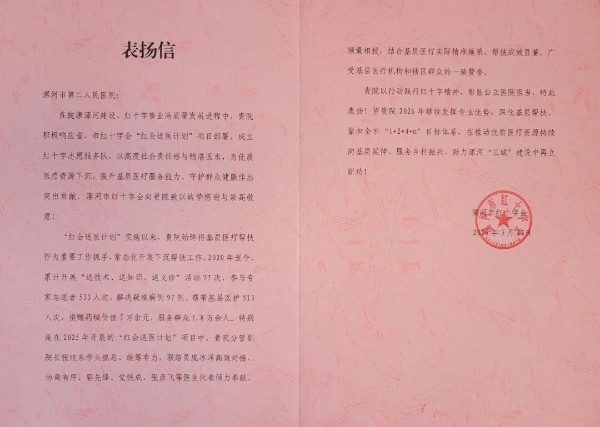 市第二人民医院党委书记魏松表示,医院将以此次调研指导为契机,始终牢记公立医院公益属性,持续深化“红会送医计划”等惠民项目,不断拓展服务内涵、提升服务质效,以实际行动在服务乡村振兴、助力漯河“三城”建设中再立新功,为健康漯河建设作出新的更大贡献。