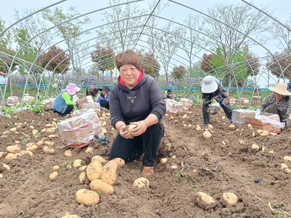 “今年,合作社200多亩大棚土豆迎来大丰收,每亩产量可达6000多斤,产出的土豆个头均匀、品相优良、口感软糯,一上市就备受市场青睐。得益于早熟优势,合作社土豆成功抢占市场先机,避开了集中上市的价格竞争,收购价达到每斤1.5元,卖出了远超传统种植的好价钱。”合作社负责人魏东亚算了一笔增收账,“一亩大棚土豆除去种子、农资、人工等成本后,净利润可达4000元左右,土豆整体收益十分可观,实实在在让土地生出了“黄金”。”