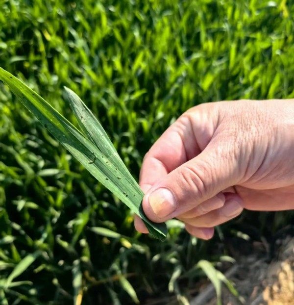 在韦湾村连片麦田中,翟金钟与服务团队俯身田间,仔细查看小麦长势,拨开麦苗检查茎叶状态,凭借专业经验快速判断出当前小麦面临的核心病虫害威胁。蚜虫正加速繁殖,其刺吸式口器危害麦苗,不仅影响植株生长,还易传播病害;叶枯病在田间湿度与温度条件影响下,已出现发病迹象,若不及时防控,将导致叶片枯黄,严重影响小麦灌浆,威胁产量形成。