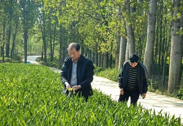 2026年4月12日下午,南召县惠农达农业生产资料有限公司总经理翟金钟带领社会化服务部工作人员,深入南河店镇韦湾村的麦田一线,开展苗情踏查与病虫害诊断工作,精准锁定小麦蚜虫和叶枯病问题,迅速制定防治方案并调派无人机与药剂,计划次日启动飞防作业,以科技力量为夏粮丰收筑牢防线。