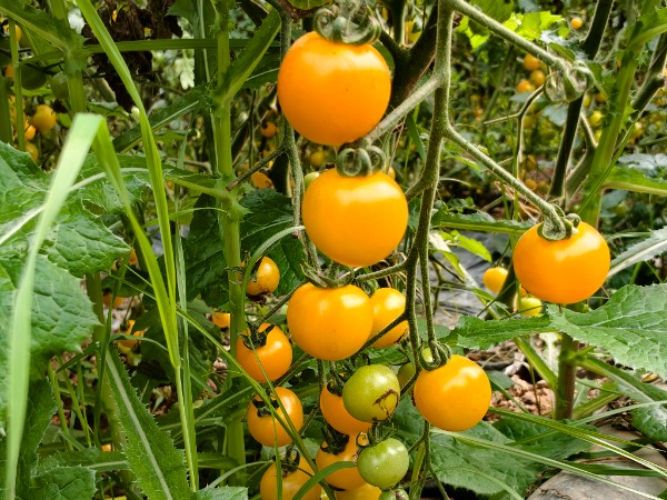四月中旬,走进阳店镇崤底村禧柿产业园,仿若踏入了梦幻多彩的鲜果乐园。一排排番茄藤蔓顺势舒展、绿意葱茏,层层叠叠的枝叶间,红果艳如烈火,黄果灿似鎏金,一颗颗圆润饱满的果实挨挨挤挤、成串垂坠。有的裹着晶莹晨露,恰似枝头缀满的玛瑙珠玉;有的半掩叶间,娇俏含羞,宛若孩童探头探脑,在暖光下泛着温润光泽。清甜果香随风漫溢,丝丝缕缕沁人心脾,满棚都是春日独有的鲜甜气息。