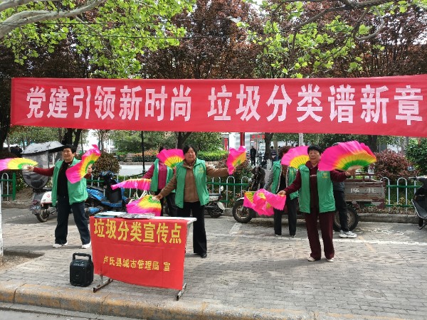 为进一步普及垃圾分类知识,树立节能低碳意识,引导市民养成垃圾分类投放、资源回收利用的良好习惯,4月14日,卢氏县城市管理局联合活动在鹏洁环保科技集团有限公司卢氏分公司,在东门外小广场开展以“垃圾分类我先行 文明生活新时尚”为主题的第38个爱国卫生月宣传活动。