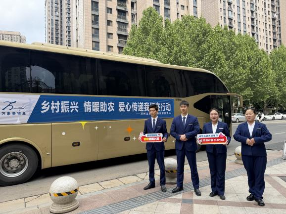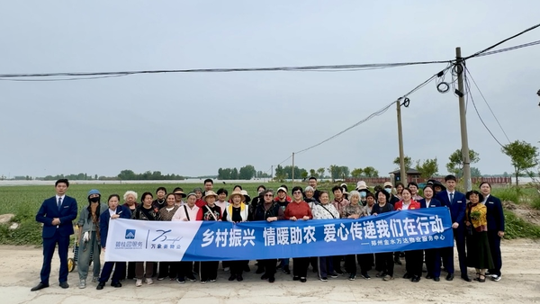 清晨时分,阳光和煦,郑州万达公馆物业党员工作人员与党员业主代表们精神抖擞、整装待发,有序登上印有“乡村振兴 情暖助农 爱心传递我们在行动”标语的爱心大巴,带着助农惠农的热忱与责任,奔赴中牟县田间开展志愿服务。