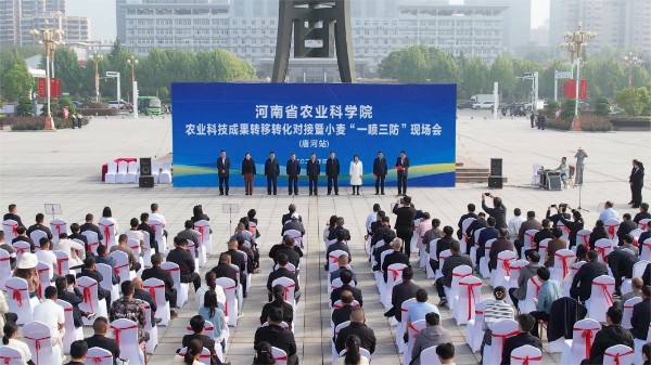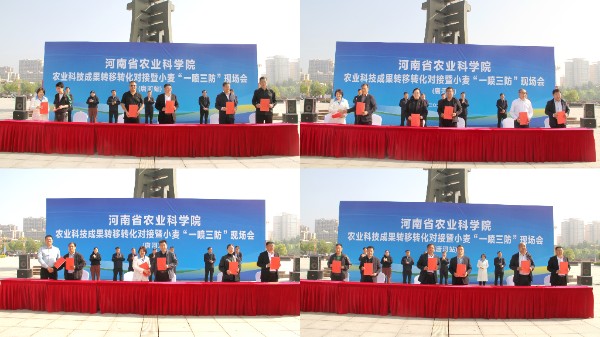 谷雨将至,万物勃发。4月17日,河南省农业科学院农业科技成果转移转化对接暨小麦“一喷三防”现场会在南阳市唐河县召开。从成果对接的签约现场,到万亩麦田的飞防一线,再到问需于企的座谈交流,一场以科技为桥、以丰收为约的院地联动,在宛都南阳大地铺展开一幅生动的兴农画卷。