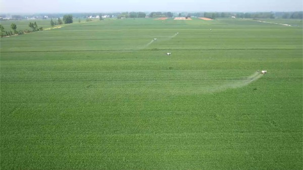 随后,全体人员前往唐河县城郊乡党老庄村小罗庄,参加小麦“一喷三防”现场会。省农科院小麦栽培专家李向东研究员现场讲解技术要点,细致指导关键期防控管理。随着唐河县政府二级调研员方明宣布项目启动,多架植保无人机腾空而起,在麦田上空均匀施药,现代科技与传统农耕在这里完美融合,引来现场阵阵赞叹。