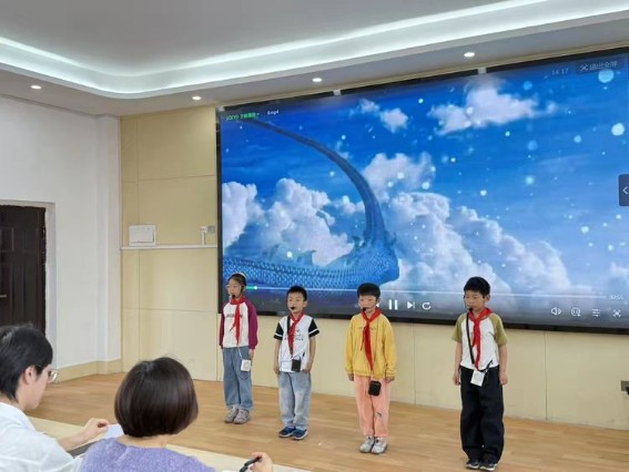 三年级的同学们,凭借更成熟的朗读技巧和深刻的情感理解,展现出高年级学生的风采。三(1)班石煜柯同学的《何其有幸生于华夏》,用沉稳大气的语调,传递出对祖国的自豪与深情,单人朗读的情感把控力极强,《小小的我大大的梦》和《彩色的梦》的同学们,也用细腻的朗读,表达了对梦想的憧憬,展现了不同主题的演绎能力。三(2)班《诗词里的中华》的两位同学,将古典诗词的韵味与朗读结合,读出中华诗词的千年底蕴,节奏把握得当,尽显古典之美。三(3)班《彩色的中国》的集体合诵,同学们配合整齐、声音洪亮,把对祖国的赞美之情展现得淋漓尽致;三(4)班《少年正是读书时》的两位同学,用坚定有力的语调,传递出少年勤学向上的决心,充满朝气与力量。