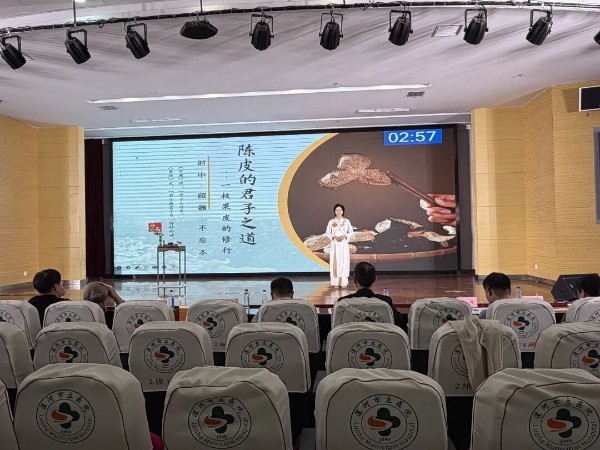 药学部杨秋杰的《陈皮的君子之道——一枚果皮的修行》则从中医药文化角度出发,以“君子之道”比喻陈皮的药用价值与品性,生动讲述了陈皮从普通柑橘皮到药用佳品的“修行”过程,介绍了其理气健脾、燥湿化痰的功效及在日常生活中的应用,该作品同样获得个人演讲类三等奖。