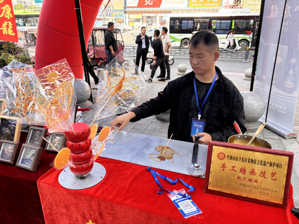 除优质茶品展销外,市集还深度融合传统文化与特色业态,带来丰富多元的沉浸式体验。活动现场,平顶山卫东区非物质文化遗产保护项目手工糖画技艺精彩展演,非遗传承人巧手勾勒,一个个造型生动的糖画作品引得市民纷纷驻足围观、亲手体验;洛阳老字号少康龙携特色佳酿亮相,尽显本土老字号品牌底蕴;平顶山卫东区非物质文化遗产保护项目掐丝技艺现场展示,让市民近距离感受传统手工技艺的精巧匠心;优动机器人编程中心带来趣味科技互动体验,实现了传统文化与现代科技的巧妙碰撞。