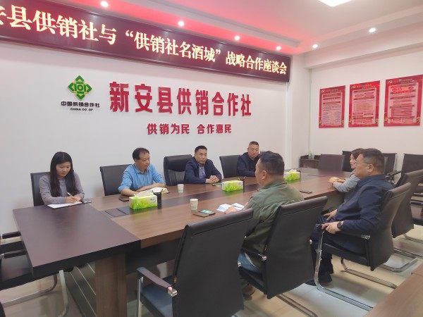 在沁阳市供销合作社。“供销社名酒城”运营团队与沁阳市供销社党组书记、理事会主任陈宝收、副主任朱伟锋等举行了战略合作座谈会。