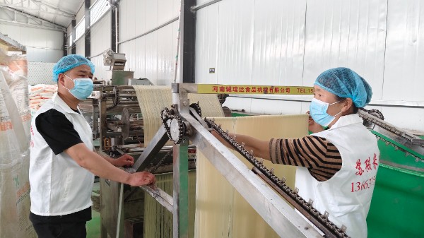 近日,在位于郏县王集乡苏庄村的启航食品加工厂车间内,自动化米线生产线正高速运转。经过加工、烘干、冷藏等工序,一批批优质米线打包整齐,即将发往各地市场。望着眼前景象,44岁的企业负责人苏自豪对未来发展信心满满。