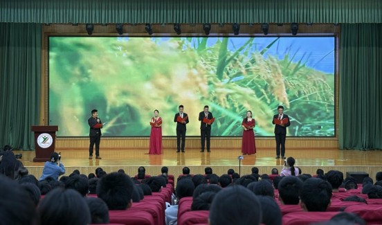 活动中,全场人员共同齐诵 “为天地立心,为生民立命,为往圣继绝学,为万世开太平”,并齐声高喊 “书香原阳、书香河南、书香中国”,铿锵有力的誓言回荡在校园上空,将现场氛围推向高潮。