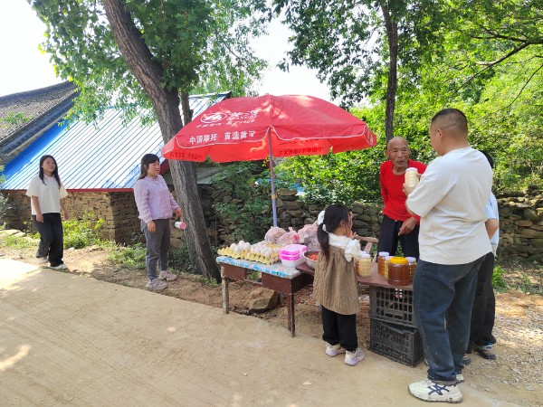 樱桃早成熟,不仅让果农卖上了好价钱,也带动了乡村旅游、特色农产品销售等多元业态发展。村民在路边摆摊,新鲜的樱桃、柴鸡蛋、蜂蜜、红薯干、芝麻叶等土特产琳琅满目,游客来这里既可以摘果又可以购买土特产。如今,方城县赵河镇樱桃沟已形成“赏樱花—摘樱桃—品农家菜—购土特产”的全链条产业模式。