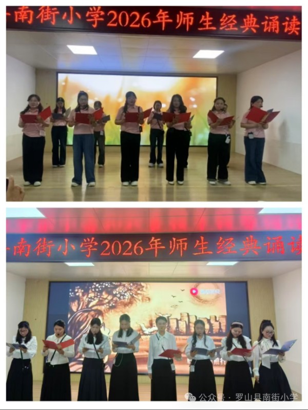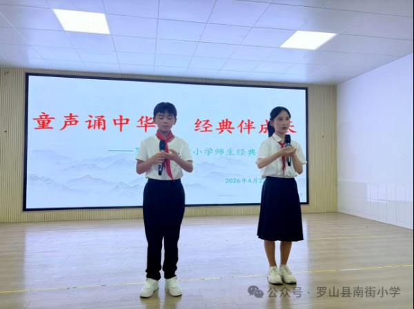 诵读经典,传承文明;书香润心,立德树人。为传承中华优秀传统文化,厚植家国情怀,营造书香满溢的校园氛围,4月22日,罗山县南街小学举行了以“童声诵中华,经典伴成长”为主题的师生经典诵读活动。全校师生以声为媒、以诵传情,在千年文脉的滋养中,展现新时代少年与教育工作者的精神风貌。