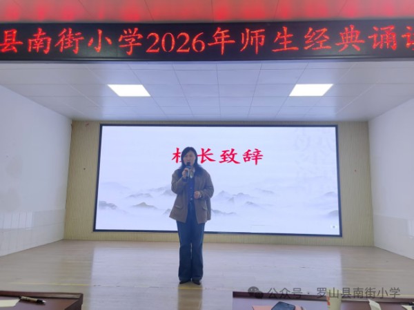 赵莉校长首先肯定了本次活动的价值:经典不是尘封的文字,而是流淌在我们血脉里的文化基因。南街小学开展诵读活动,不仅仅是为了一次表演,而是希望孩子们能在“读中国、颂中华”的过程中,读懂我们民族的根与魂,读懂诗词里的山河,读懂文字里的风骨。接着赵莉校长也对全体同学寄予殷切期望,希望同学们把诵读经典的热情,变成成长路上的底气,在书香中涵养品格,在传承中汲取力量,做一个有根、有魂、有光的南街少年。