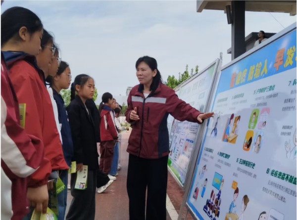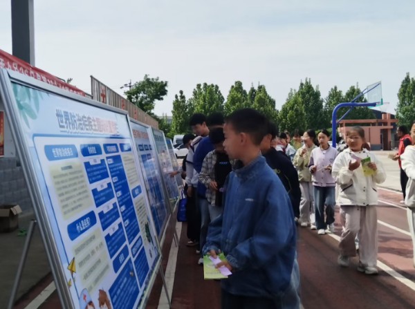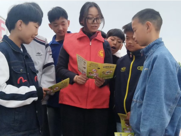 在北贾小学体育场,武陟县疾病预防控制中心地方病防治科科长、健康科普宣讲专家李艳芳走上讲台,用通俗易懂的语言、切合实际的事例,准确翔实的数据,向师生们详细讲解了疟疾的传播途径、症状表现和预防措施;健康志愿者为学生们发放了图文并茂、简单明了的折页、笔筒和量尺,耐心讲解了预防春夏季传染性疾病防治常识;学生们依次有序参观了疟疾防治宣传展板,并就相关问题与健康志愿者请教交流。