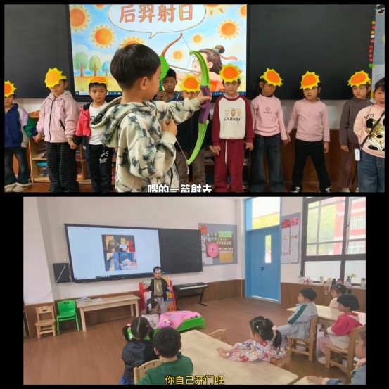 童趣演绎,乐享书香。园内孩子们轮番带来特色才艺展示,活力满满的国学三字经手势舞、规整可爱的弟子规手势舞,将传统国学与趣味舞蹈结合,小朋友们跟随轻快的节奏,手眼相随、动作整齐,在律动中熟记国学经典,感受中华优秀传统文化的魅力。同时,趣味满满的情景剧精彩登台,幼儿自主参与演绎《后羿射日》 《小红帽》 两大经典故事。孩子们化身故事里的角色,生动的表情、稚嫩的台词、投入的表演,完美复刻经典故事内容,沉浸式体验书本故事的魅力,让枯燥的文字变成鲜活的画面,让孩子读懂故事、学会思考。