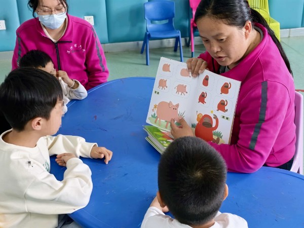 课堂上,康复治疗师化身“故事大王”,结合特殊儿童认知特点与康复需求,精心挑选色彩鲜艳、内容生动的绘本、图画书及启蒙读物,通过指认图画、模仿角色、情景互动等形式,引导孩子们主动参与、大胆表达,把抽象文字化作鲜活有趣画面,让孩子们在轻松愉悦氛围中感受阅读魅力 。