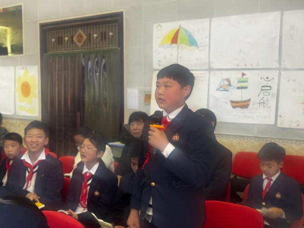 读书会现场,书香萦绕,氛围热烈。活动伊始,仪式温情满满。该校郭子晴同学代表全体学生,为左昡老师深情献词、敬献红领巾。真挚的话语诉说着对文学的热爱、对作家的崇敬,鲜艳的红领巾承载着少年最纯粹的敬意,定格成校园最美的书香画面。