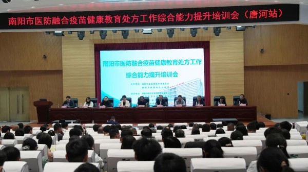 由唐河县卫生健康委员会承办的“南阳市医防融合疫苗健康教育处方工作综合能力提升培训会”在此举行。此次会议旨在深化医防融合,推进成人疫苗接种及疫苗健康教育处方工作,共谋公共卫生服务新篇章。