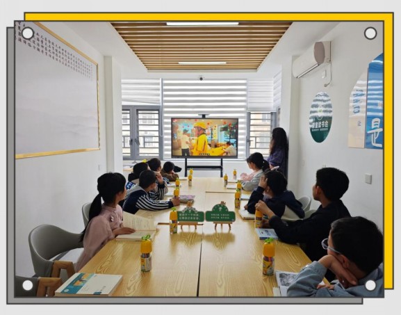 随后,孩子们轮流朗读了《老人与海》,一字一句,认真而投入。“一个人可以被消灭,但绝不能被打败”——这句名言被读出时,经典与现实悄然连接——那位与大鱼搏斗的老人,和短片里奔跑的外卖小哥,似乎拥有了同一种力量。一颗关于勇敢、坚持与永不放弃的种子,落在了孩子们的心田。