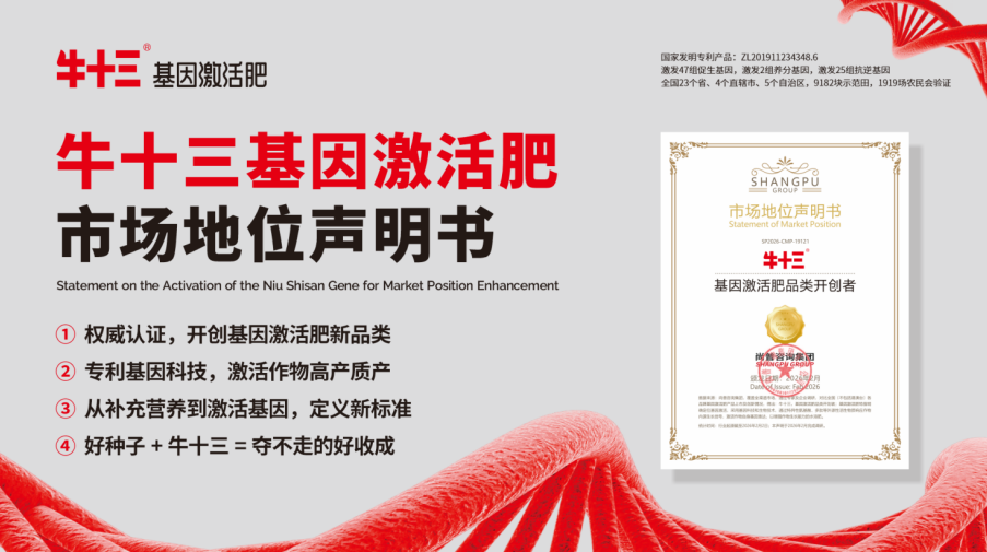 “牛十三基因激活肥”定位为基因激活肥品类开创者,其技术路径并非传统营养补充,而是通过生物活性物质调节作物基因表达阈值,激发作物自身对养分、水分及逆境的响应潜能。这一方向恰好契合当前中国农业投入品的三条红线: