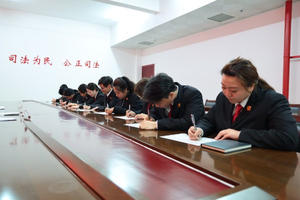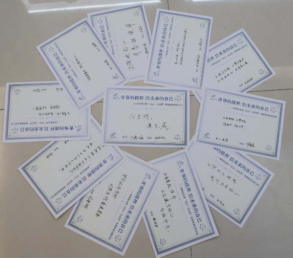 活动现场,青年干警们立足岗位实际,在寄语卡片上认真书写青春誓言并互相交流心得感悟,或抒发对法治事业的赤诚之心,或立下对未来工作的奋斗期许,或寄语成长路上的自己,一字一句饱含对司法事业的热爱与坚守,定格下法院青年昂扬向上的青春模样。