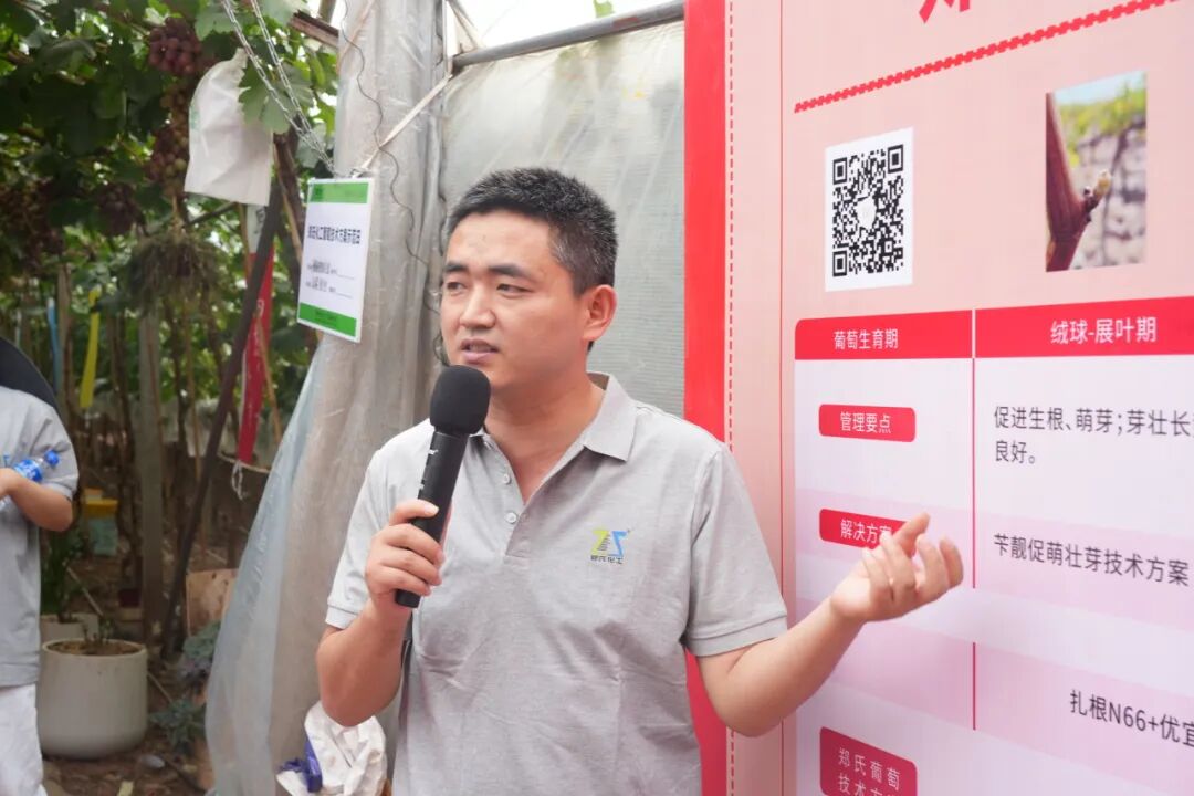 郑氏化工市场部方案开发经理陈守旗结合现场展板,图文并茂为大家讲解葡萄全程技术方案,联系田间实际种植需求,以全程技术方案,助力葡萄高效优质种植。