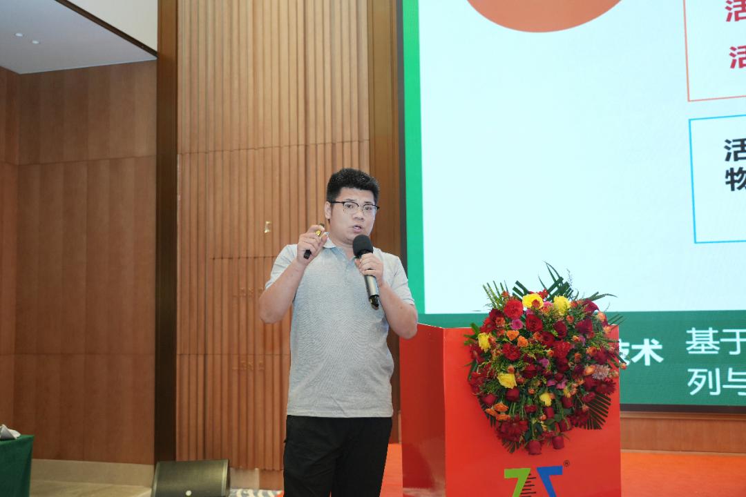 ▲市场部肥料产品经理王文朝作分享