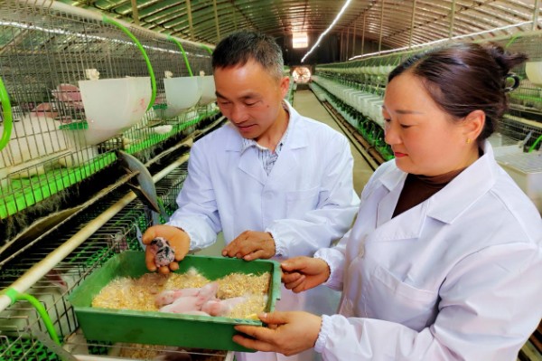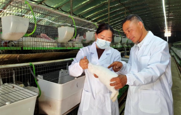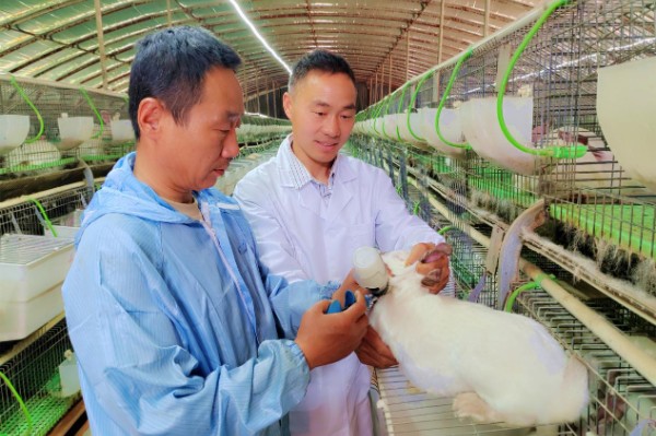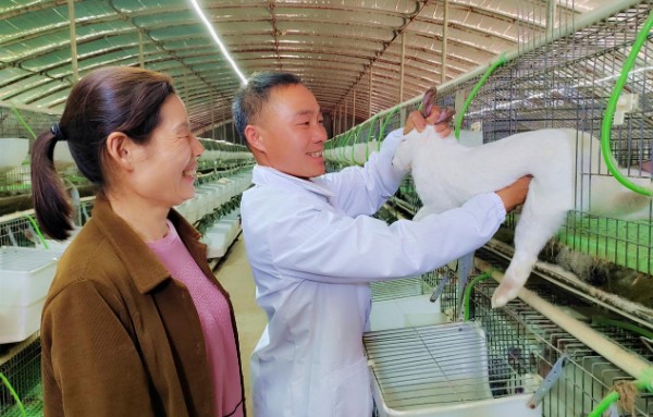 “以前在外打工顾不上家,现在跟着公司养兔,一年能有8万多,日子越过越踏实!”八台镇石桥杨村村民杨大哥的账本,道出了易轩兔业联农带农的共富真谛。针对农户养殖技术薄弱的痛点,该公司组建专业技术服务团队,开通24小时服务热线,从兔舍规划搭建、种兔供应、疫苗接种,到病害防治、技术培训,为农户提供全程一对一跟踪服务,解决养殖户后顾之忧。