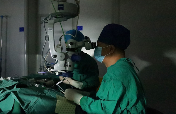 在40分钟左右时间,张女士的手术顺利完成。术后经过一段时间的精心休养和康复,张女士左眼的视网膜复位良好,已经可以看到0.25了,这对1200度近视的视网膜脱离患者显得难能可贵。