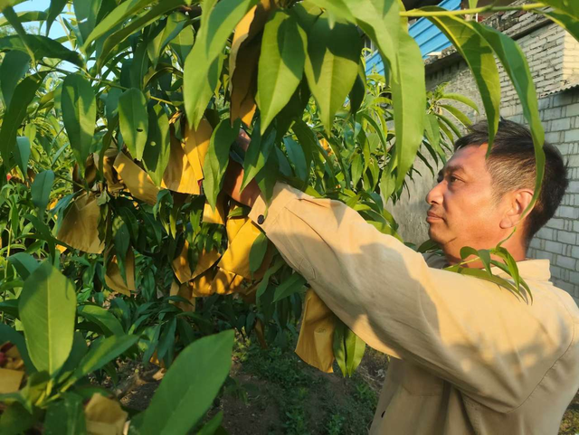 谢海景的种桃之路并非一帆风顺。他继承了父辈的种桃技艺,又通过网络学习新知识,不断引进新品种,逐渐将这片桃林打造成了远近闻名的优质桃园。如今,他的桃园里种植着黄金蜜、蟠桃、映霜红等9个高端品种,从端午节到国庆节,月月都有新鲜的桃子上市。