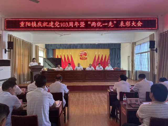 6月29日上午,南阳市西峡县重阳镇隆重举办庆祝建党103周年暨“两优一先”表彰大会,回顾党的光辉历史,讴歌党的丰功伟绩,进一步激励全镇各级党组织和广大党员坚定信念、对党忠诚,履职尽责、担当有为,奋力谱写重阳镇建设“经济强镇、生态大镇、文化名镇”新篇章!