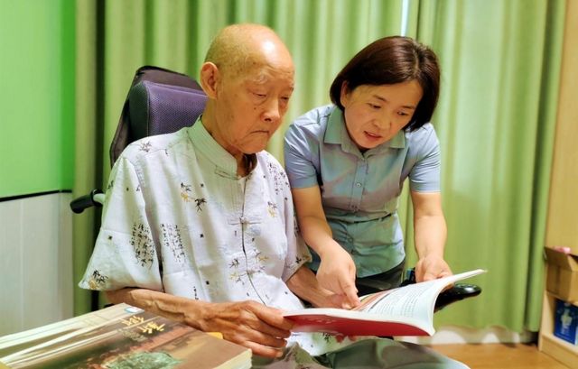 当见到杨天定老人时,精神依旧矍铄,丝毫看不出实际年龄,虽然已是耄耋之年,但依旧热爱文学,平时喜欢在养老院将生活中的美好事物汇聚成诗,通过诗句描述所享受幸福快乐的生活情景,同时,抒发对养老院护理人员的感激之情。