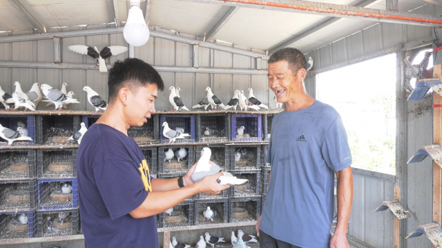 经过王彬的细心养殖,一羽羽信鸽也称为他发家致富的有力助手。随着在线上平台上分享自己的养鸽故事和经历,他通过网络也逐渐拓宽了自己的致富渠道,去往外地和全国鸽友相互交流并通过自己的模式帮助其他养殖户销售鸽子。慢慢地,周围的村民也开始跟着他开始了养殖鸽子之路。