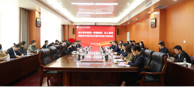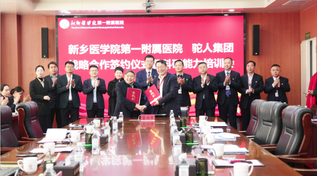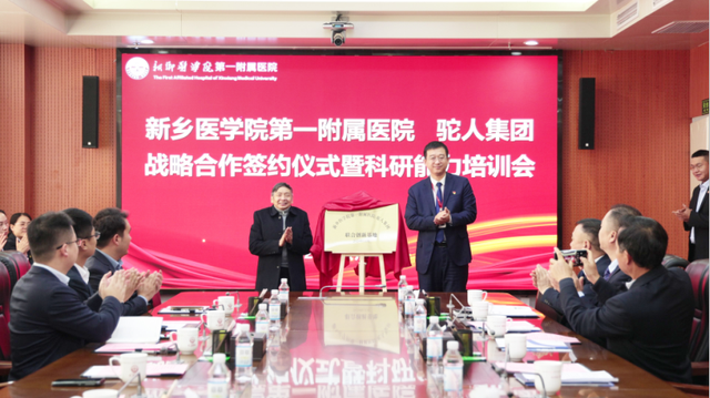 11月6日,新乡医学院第一附属医院同驼人集团签订医企联合战略合作协议,现场举行“联合创新基地”揭牌仪式,并举办科研能力培训会。