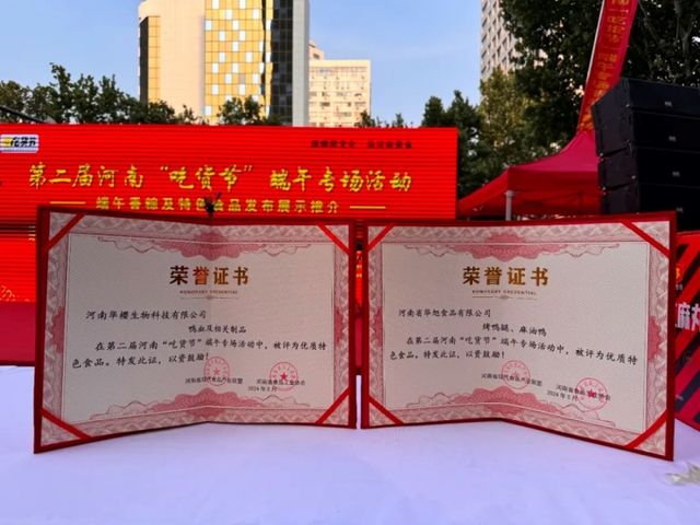 活动现场,宣布了第二届河南“吃货节”端午专场活动——端午香粽及特色食品获奖产品名单,其中华英烤鸭腿、华英麻油鸭、华英鸭血等美食产品被评选为“优质特色产品”。据了解,此次获奖产品经过严格的品鉴筛选,包括质量要求、外观包装、气味、色泽、滋味与口感等方面,旨在评出质量上乘、风味独特的特色食品。