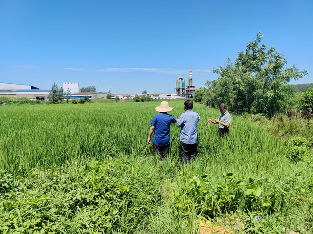 在固城乡鸿稻恒丰农业产业发展有限公司水稻示范基地通过调查发现,水稻发育良好,但是个别田块出现苗不齐、弱苗现象,在与企业负责人深入交流后指出高温时期,水稻对氮、磷、钾等营养元素的需求增加,适时施肥有利于水稻生长;还要加强稻瘟病、纹枯病、二化螟、稻飞虱、稻纵卷叶螟等常见病虫害的防治,科学开展防治工作,高温时期水稻病虫害的发生和蔓延速度加快,容易导致水稻减产。