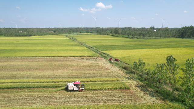 丰收的果实藏在稻壳里,丰收的密码却写在土壤中。今年以来,淮滨县积极开展粮油主要作物单产提升行动,通过集中育秧、水稻全程机械化、超前控蘖、病虫害统防统治技术,为水稻增产增收提供科学保障。据统计,2024年,全县水稻种植面积60余万亩,其中优质水稻55万亩。由于淮河南北跨度较大,农时差异明显,淮河以南的期思、王店、谷堆、张庄等乡镇农时较早,稻谷已经成熟。目前,随着水稻大面积开镰,农机部门正统筹农机调度作业,做到成熟一块、收获一块、秋种一块。气象部门正密切关注天气变化,组织农户备好收割机器,指导农户抢抓农时,有序开展水稻收割作业,确保稻谷颗粒归仓。